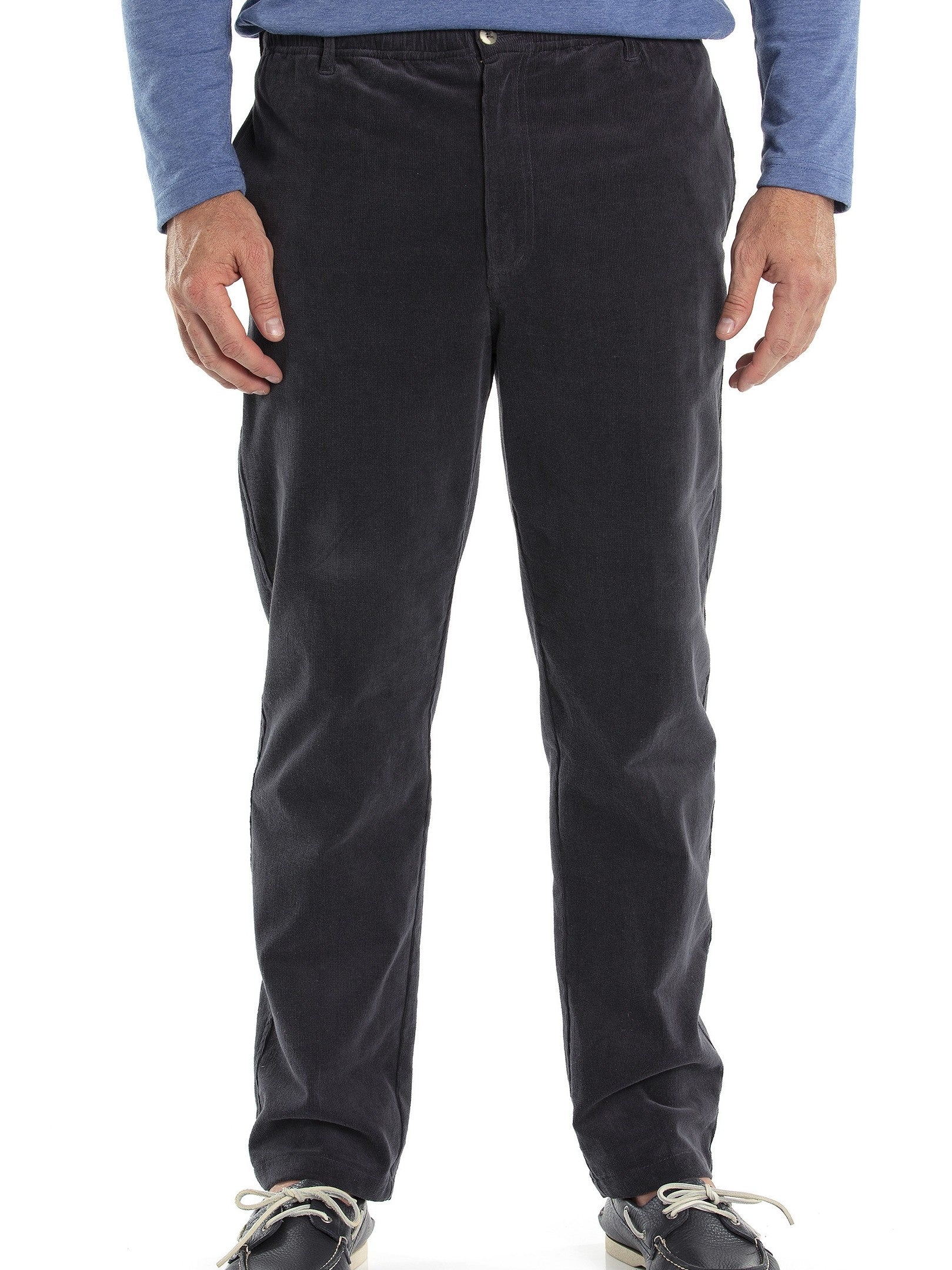 The popular Woodbury pull-on pant combines comfort, style and practicality, making them a solid option for everyday wear. The classic pair is made from a cotton-rich blend with a soft suede hand feel. Featuring a relaxed fit, they're detailed with vertical side pockets and rear button pockets for a smart-casual finish.